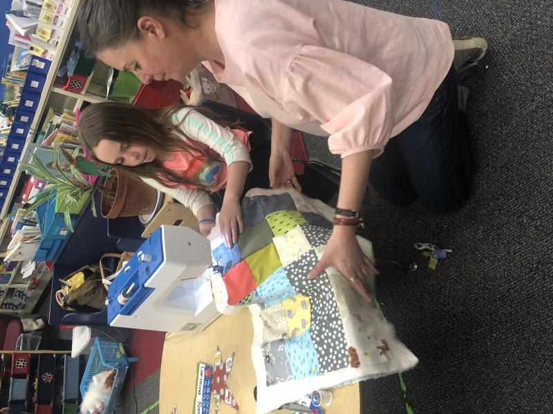 Maya using the sewing machine