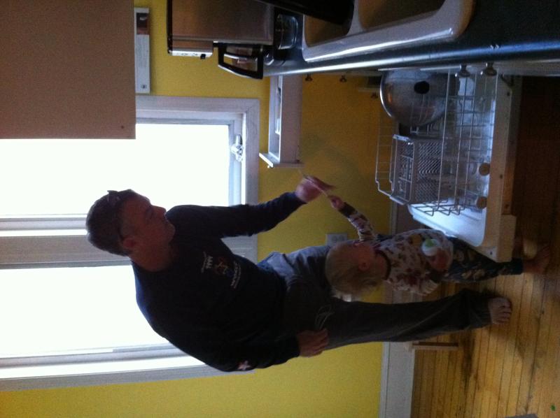 Helping daddy unload the dishwasher