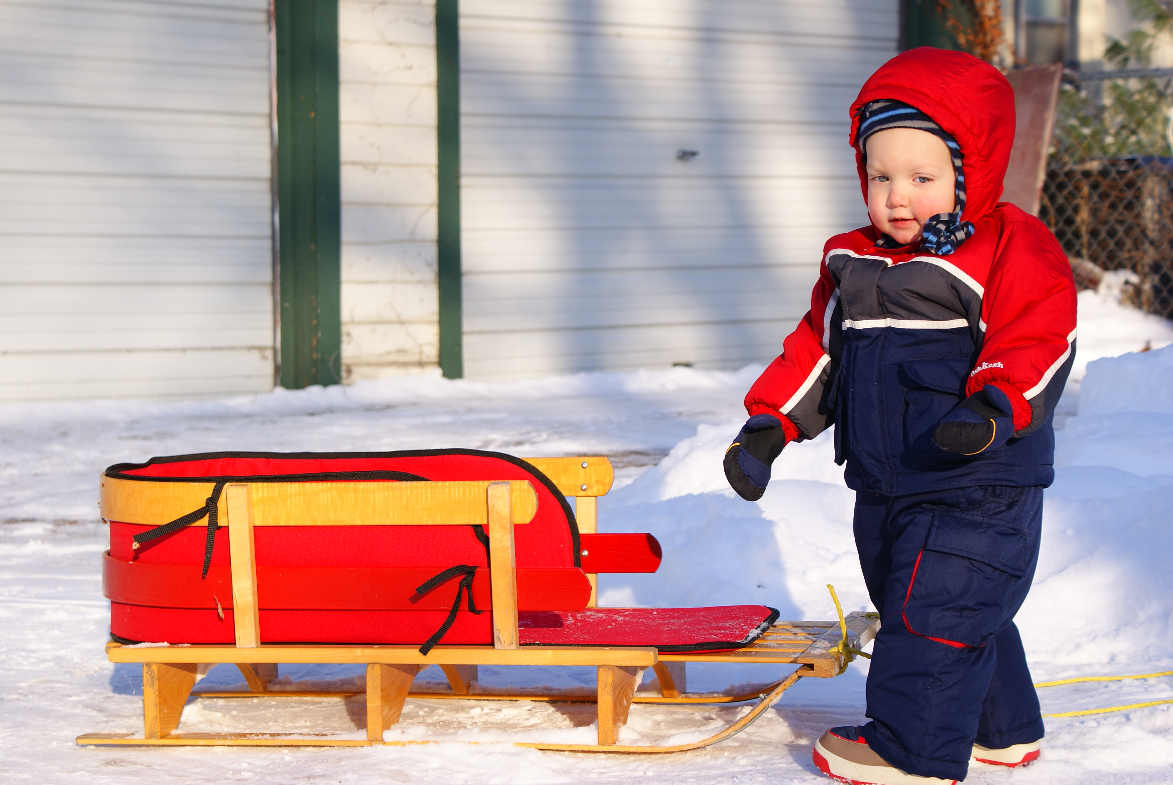 We had to go up and down the alley today since that was the only snow pack available. Nico loved the sled! Especially when Daddy would run with it!