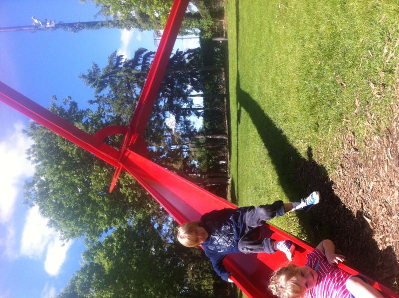 Maya gives the sculpture garden two thumbs up