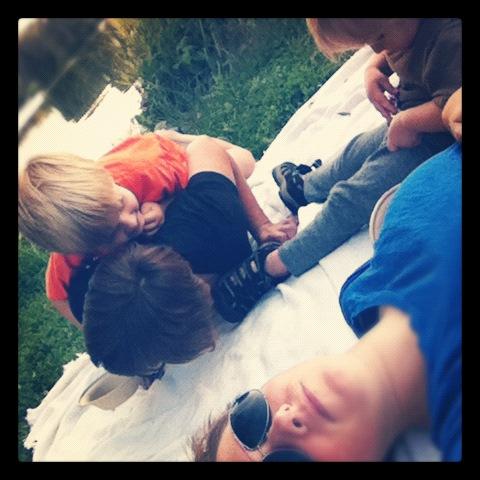 Post-picnic wrestling match