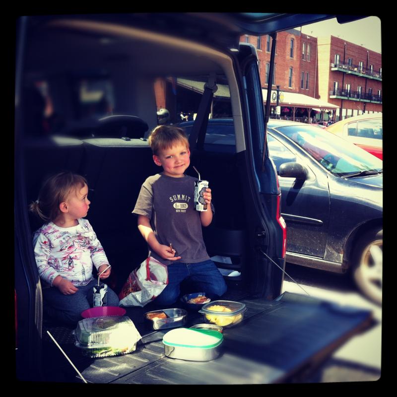 Car picnic in Stillwater, watching boats go under the lift bridge