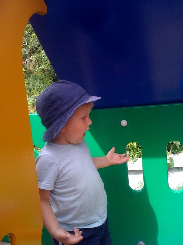 Mystery fruit -- "can I throw it into the water? Do you think a gull will come and get it?"