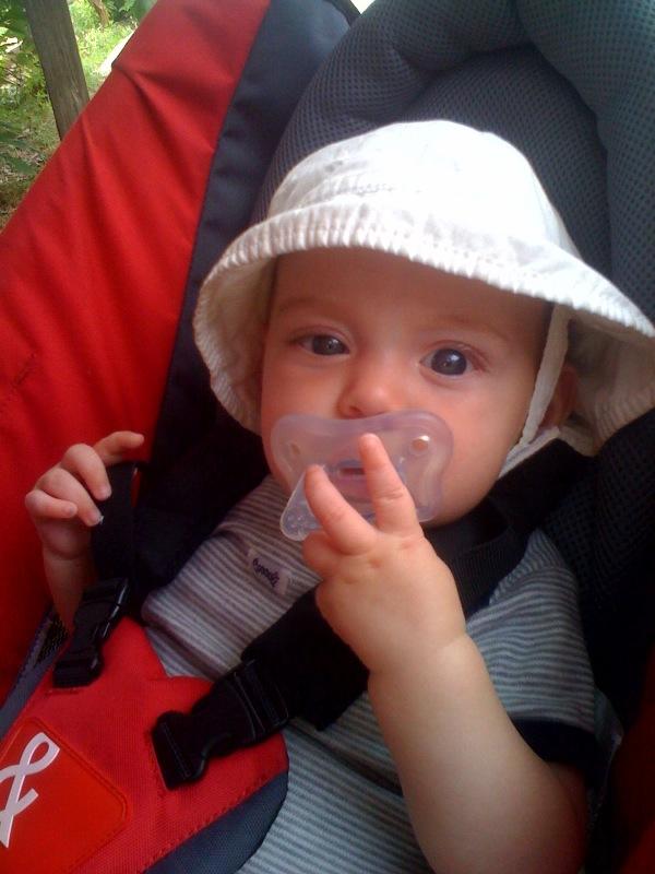 Maya tries out the chair for the very first time, devours Sophie the giraffe.
