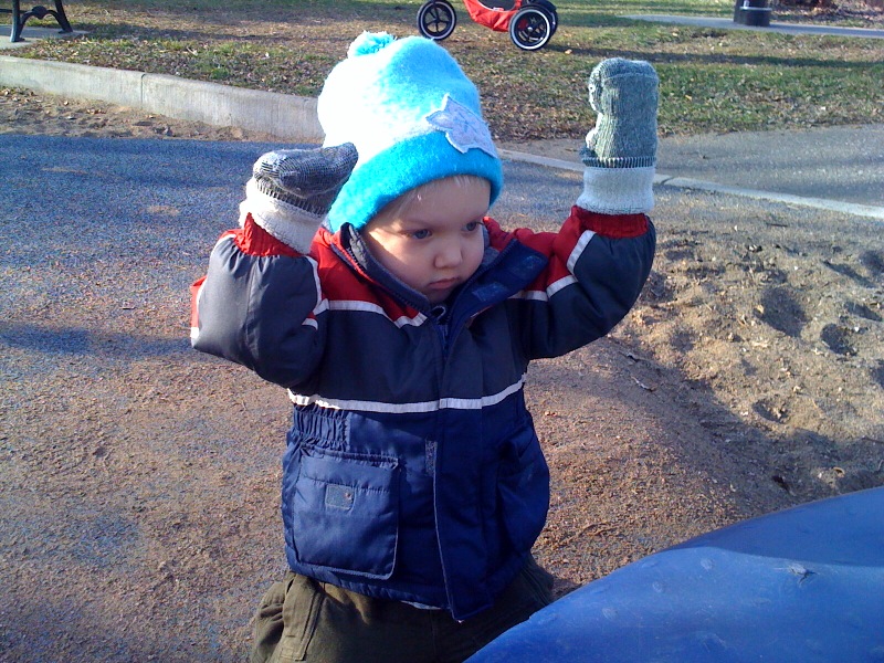 Holding up 'new' mittens (re-purposed socks)