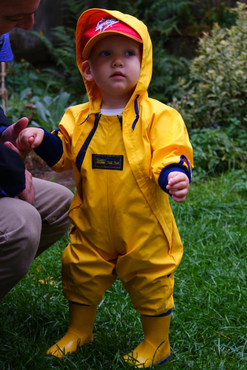 Nico likes playing in the rain, especially with his special Gortex suit, we call it the HazMat. The boots were a gift from our neighbor Dan - 50 cents at a rummage sale.