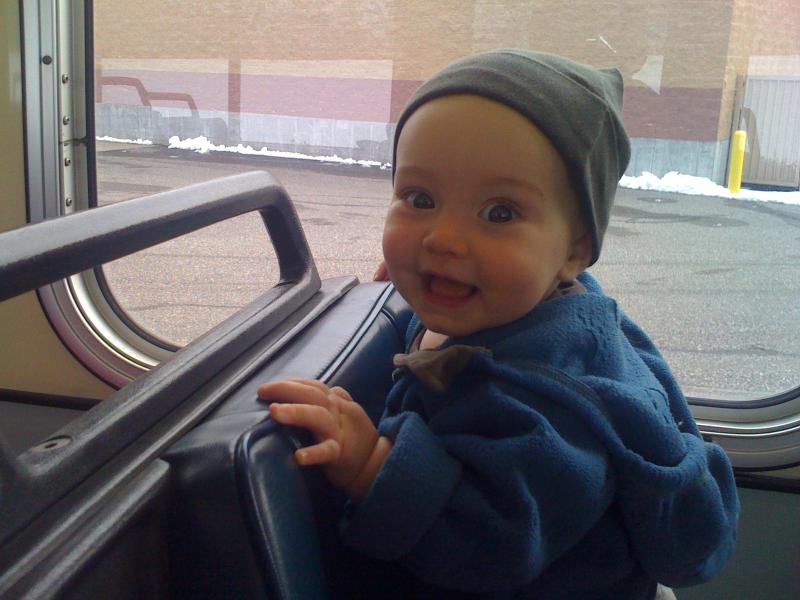 Nico sleeps on the bus