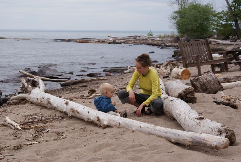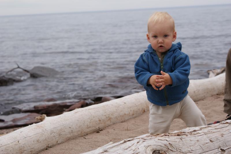 Here we are on the first day of our two week vacation. That's Lake Superior in the background. Nico was enthralled with the waves and wanted to run into the lake. At over 900 feet deep, probably not a good idea.