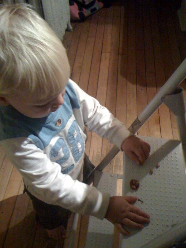 Carefully placing "eggs" (dry beans) into the "nest" (a flake of cereal)