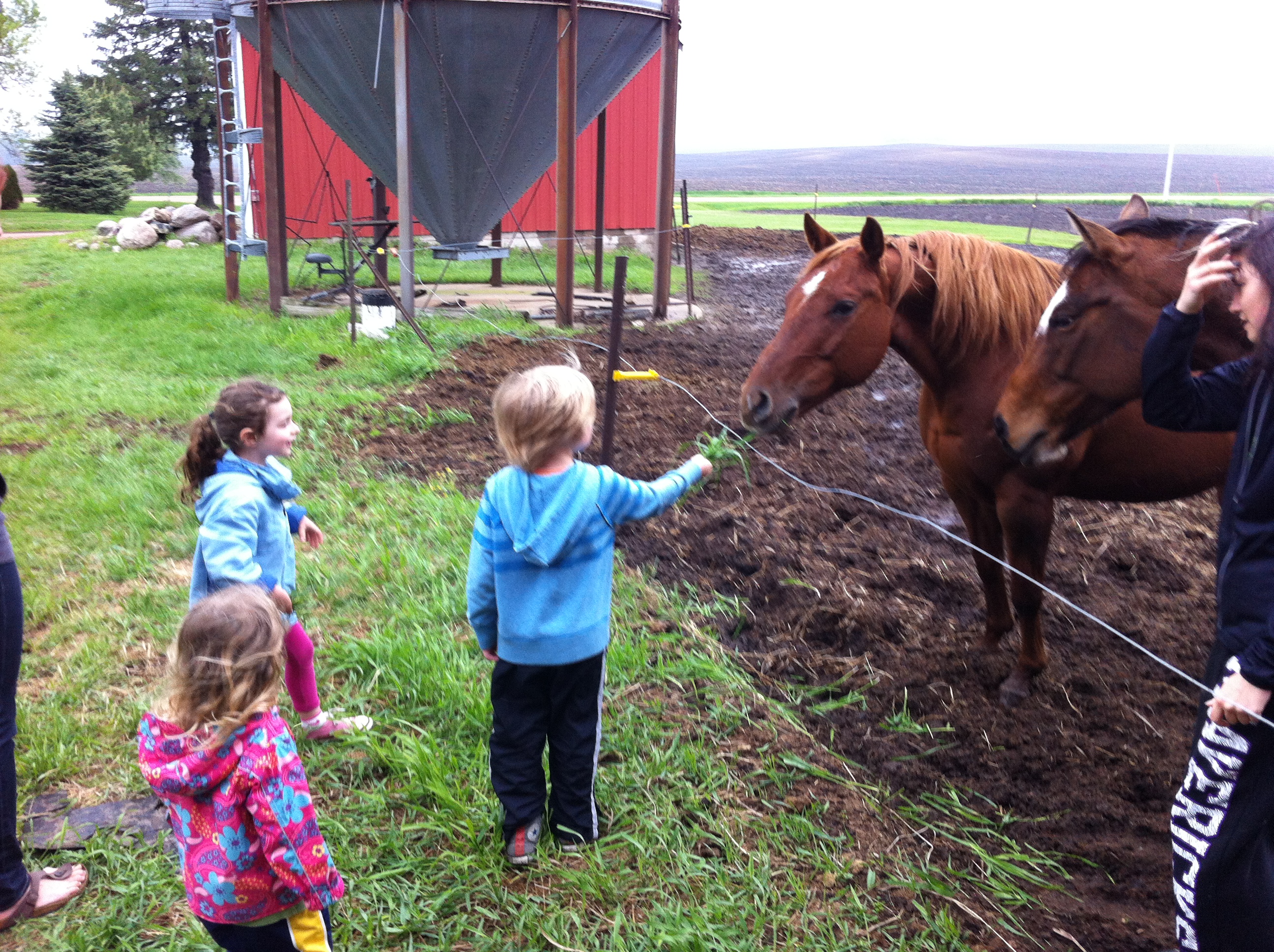 On the farm feeding the horses