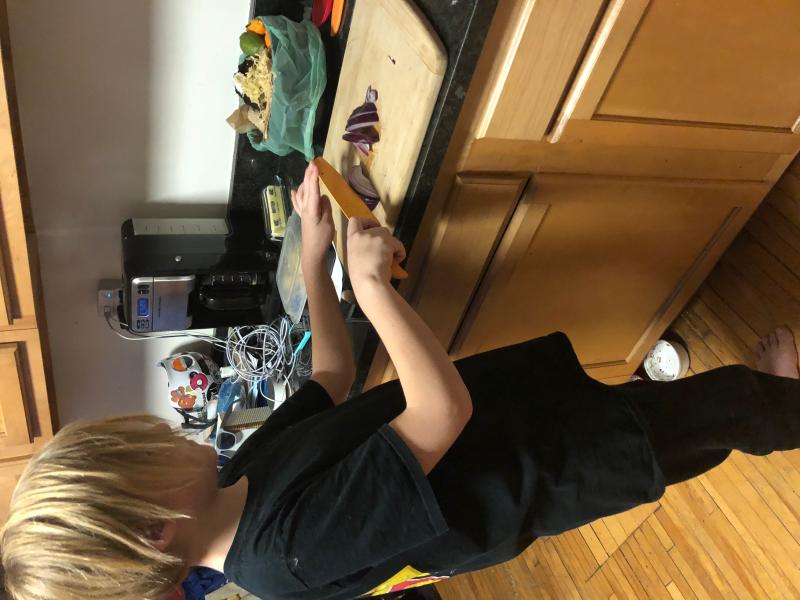 Nico chopping onions for our dinner
