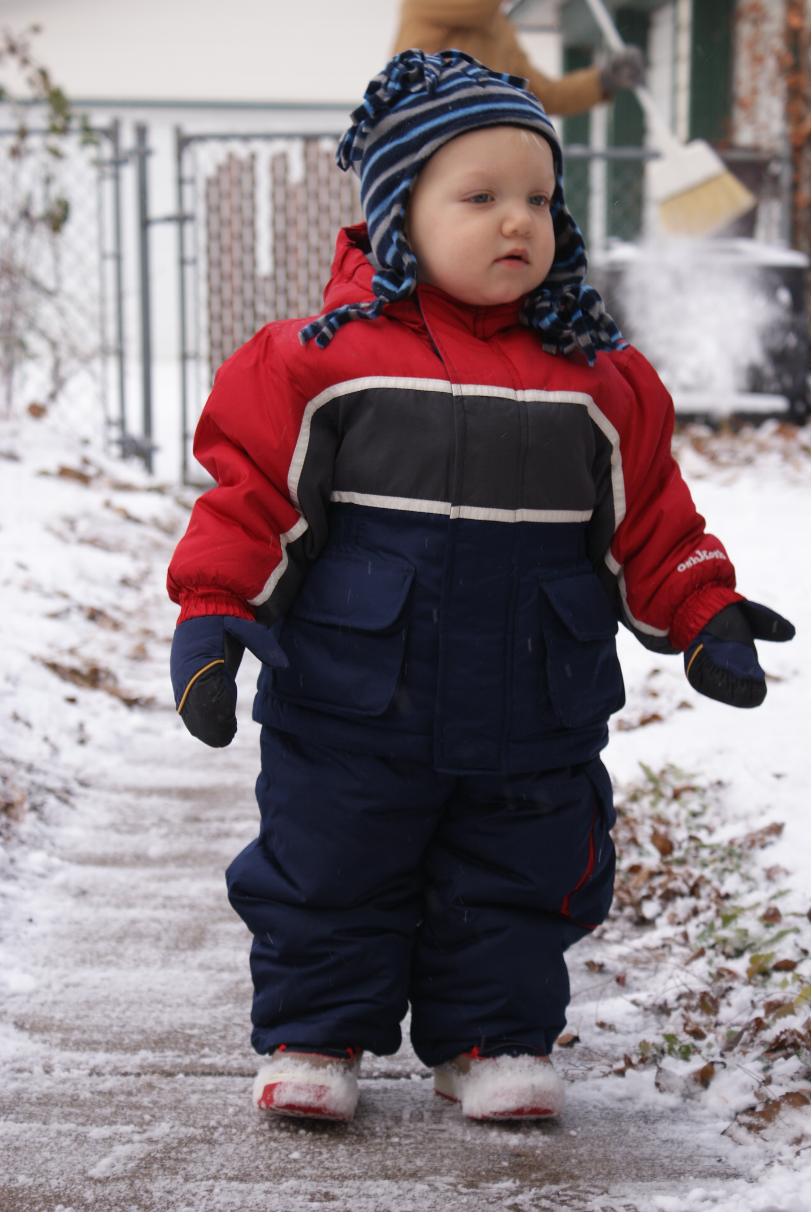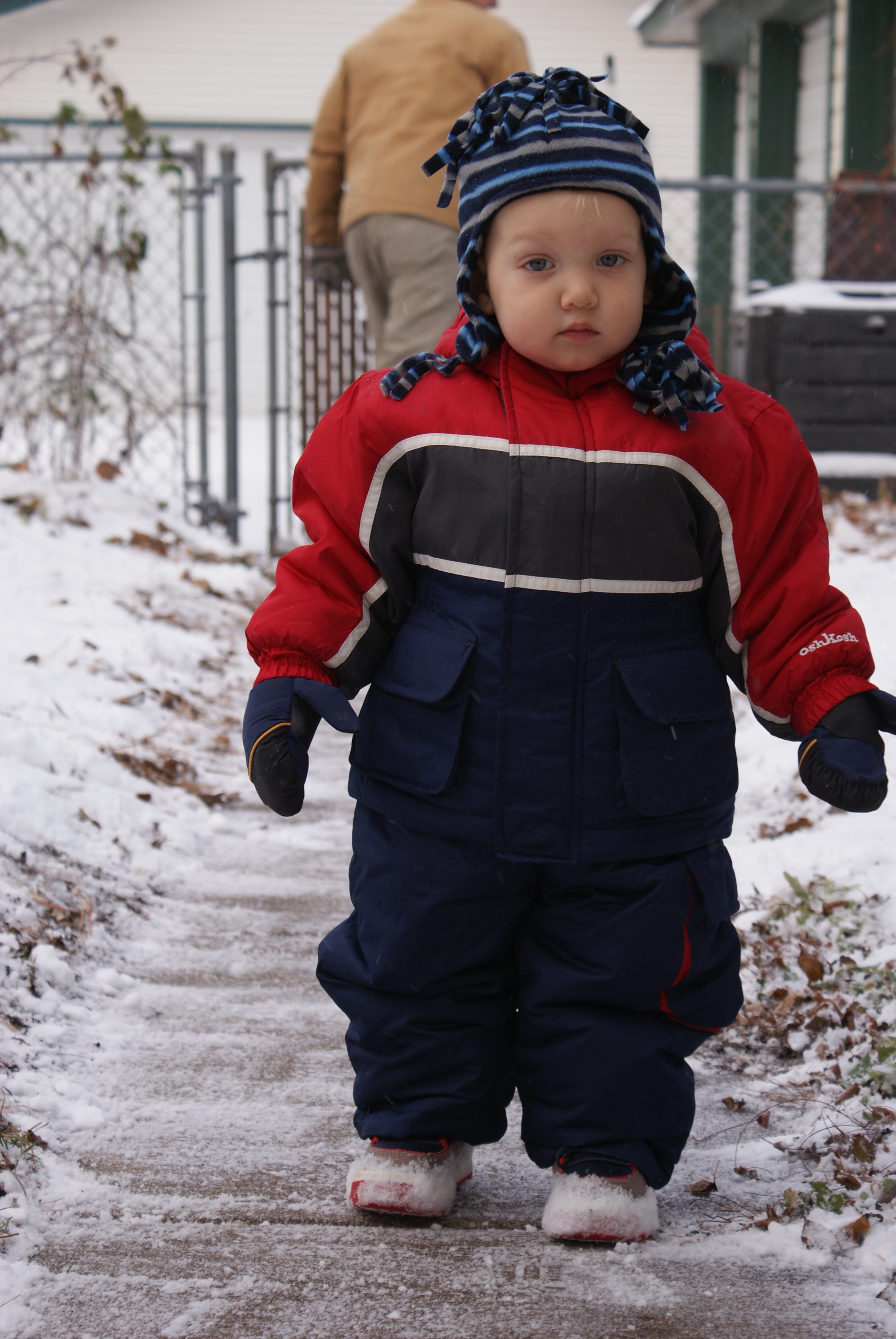 Nico enjoys his first walk in the Minnesota snow (well, enjoy might be a stretch)