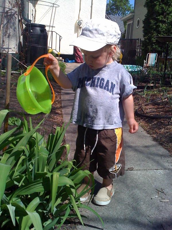 Watering the day lilies