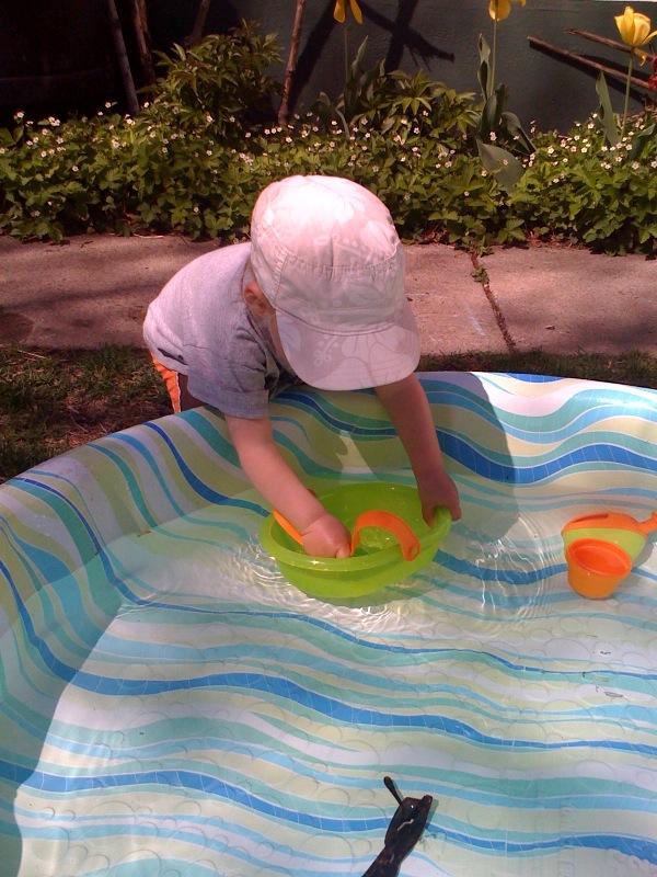 Watering the garlic