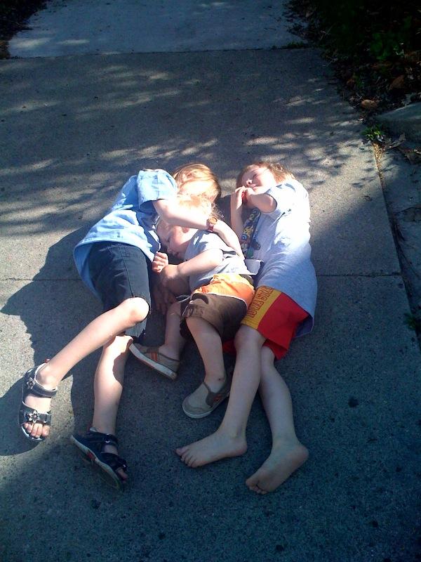 Laying on the sidewalk with Rose & Anders