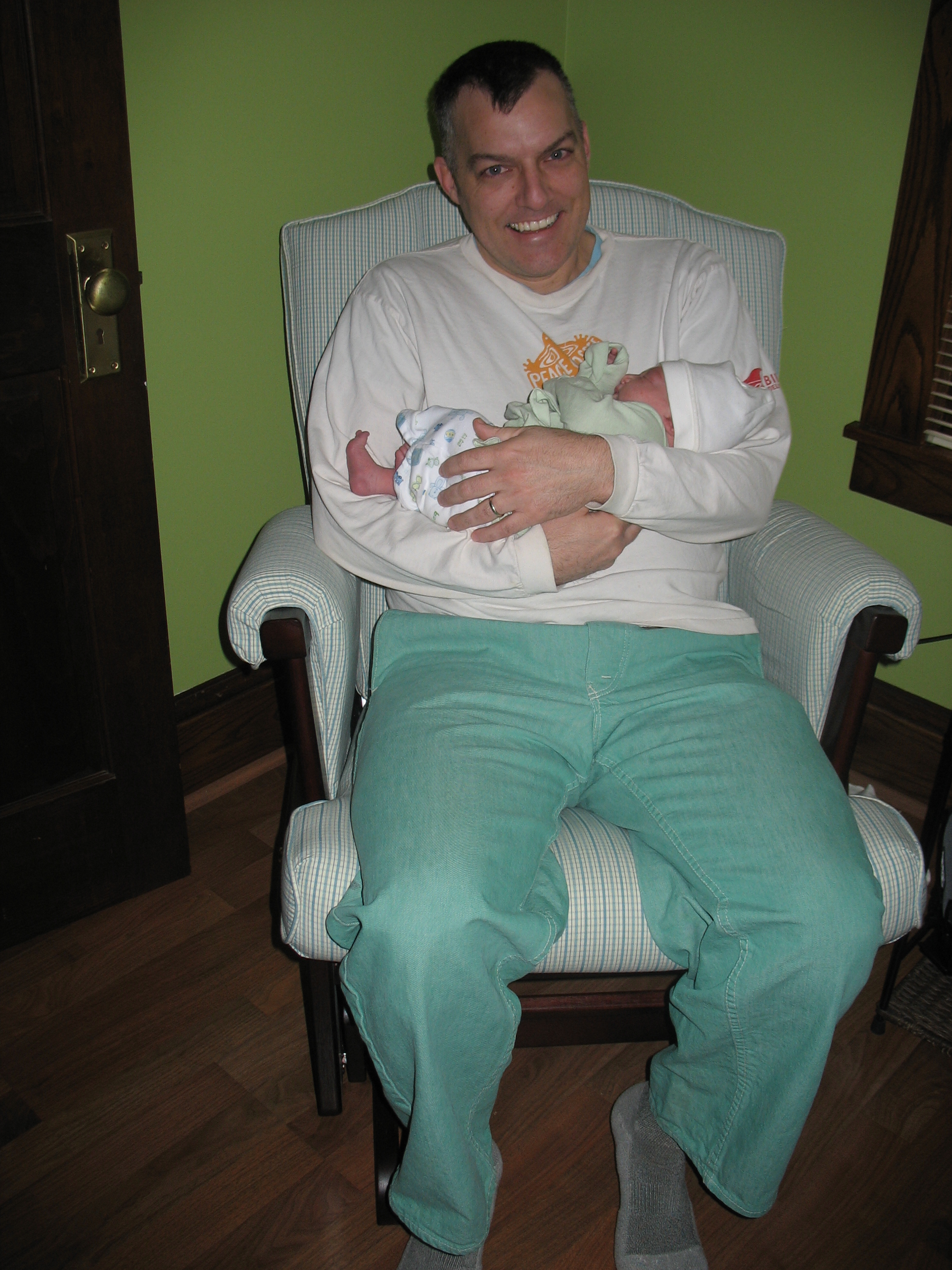 After a major spit-up incident, Nico was happy as a clam wrapped up in his Daddy's arms. Daddy looks quite content too...obviously, it wasn't him who'd been spewed upon only moments before!