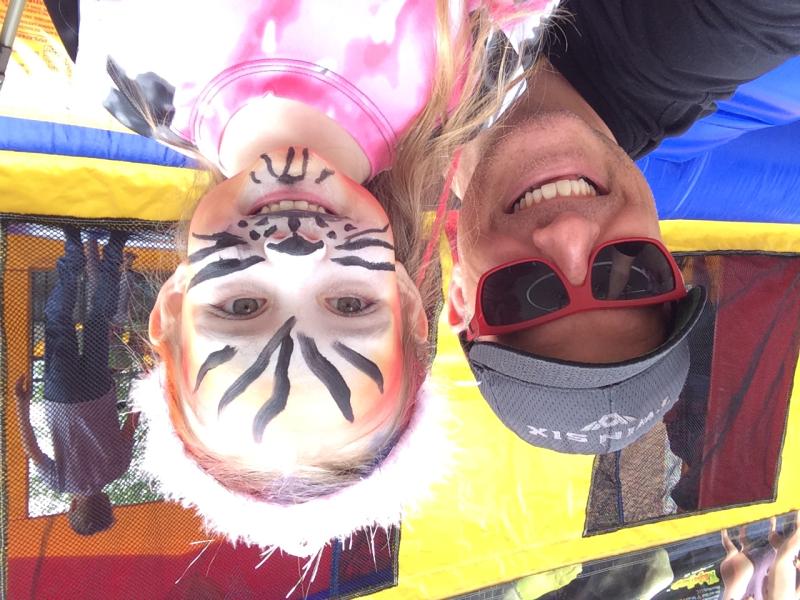 Clearly Daddy went a little overboard with Maya this year, but with Nico having so many friends to play with... Maya and I hung out at the start and I steered her towards the stuff she loves and did some of last year - a braid, hair color (Rainbow of course), hair extensions, princess crown. $16 no problem, add on a full-face tiger paint job for a Lincoln and we have a happy carnival camper! Worth. Every. Penny.