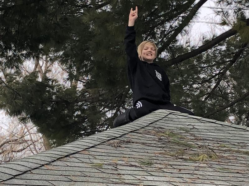Nico chopping onions for our dinner