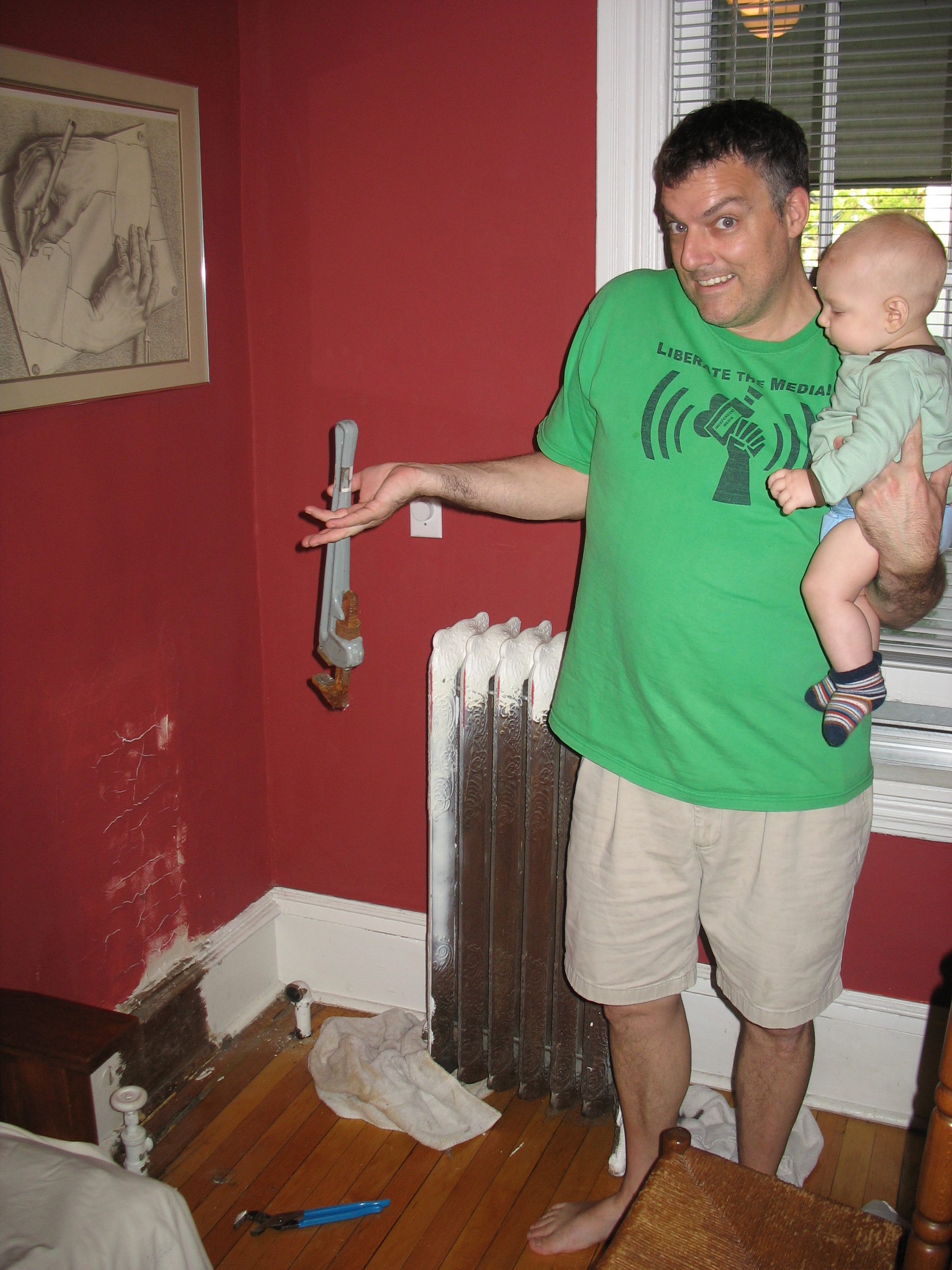 Nico survey's the work of Mama and Daddy as they start the move to take over the whole duplex. That's another 1000 square feet just for Nico. Well, there will be a guest bedroom and a huge new bedroom for Mama and Daddy, but Nico will get a 6 by 9 bedroom all his own.