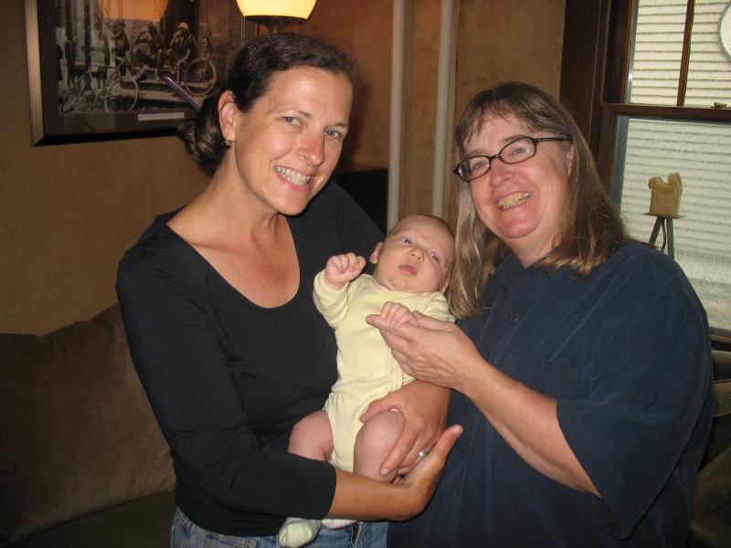 Urban Earth Co-op friends Carol and Mary Ann stopped by for a little lunch today. It was quite fun and they got to hold Nico as well as see his eyes wide open for a lot of the time.