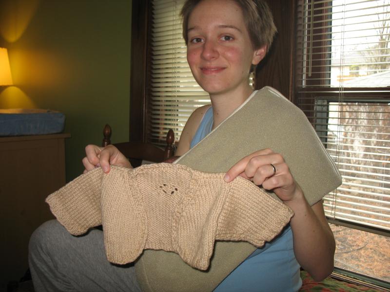 Our friend Betsy came by today with the cutest knitted sweater she made. She got the whole story of our birth process and not much else. It was great to see Betsy and she is one wonderful listener!
