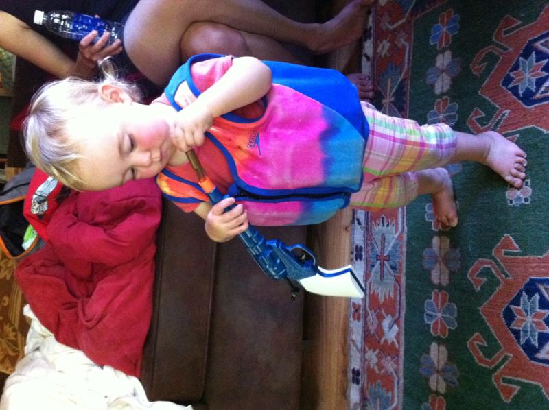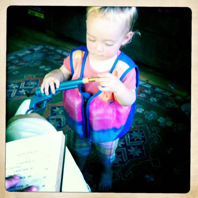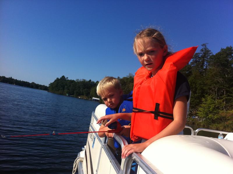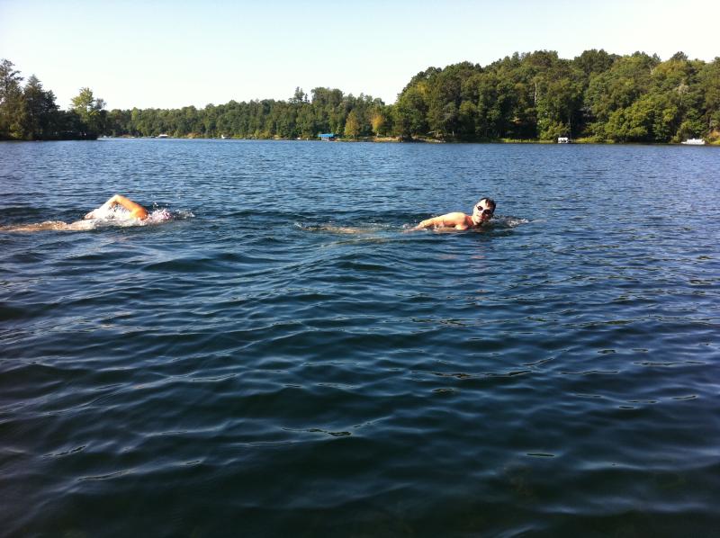 Shadowing Aunt Heather & Uncle Dave for a swim across the lake