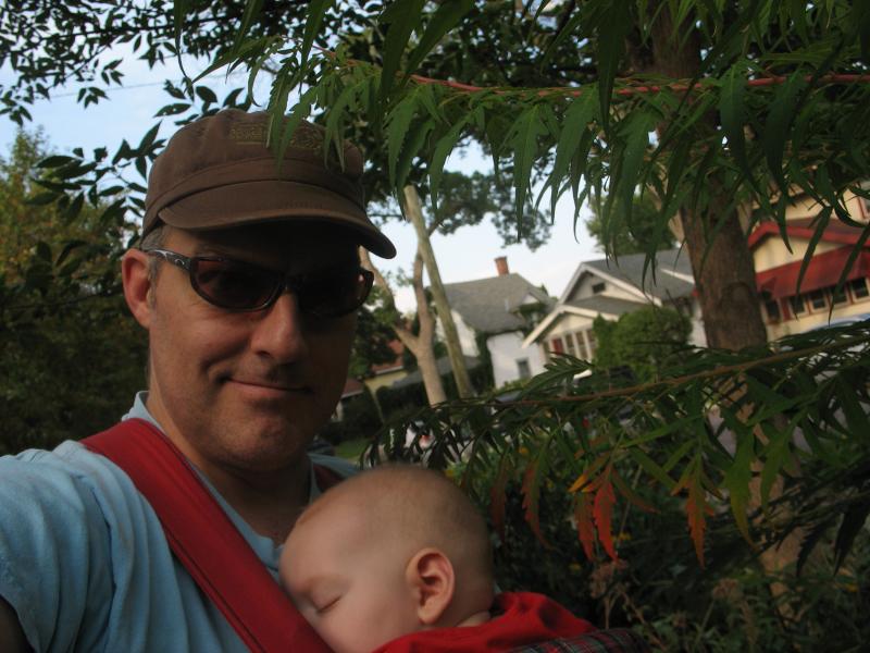 Nico experienced his first fall colors today during an afternoon garden walk. The cut-leaf sumac out front started turning red.