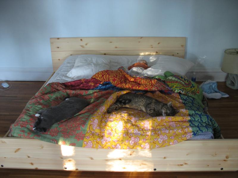 We also met our neighbor Jackson, who lives down the street and has long admired our basil in the Cresent Moon Herb Garden out front. We talked through the ingredients for pesto (basil leaves, garlic, olive oil, pine nuts), include parmesan cheese if eating right away, if freezing for later use, don't, you can add it when you use it this winter.