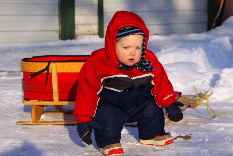 Nico woke us up before dawn, ready and raring to go. After we were reasonably caffeinated, we bundled ourselves up and went outside into the falling snow. We already had a few inches of snow cover, and they were predicting up to 7" during today's snowfall!