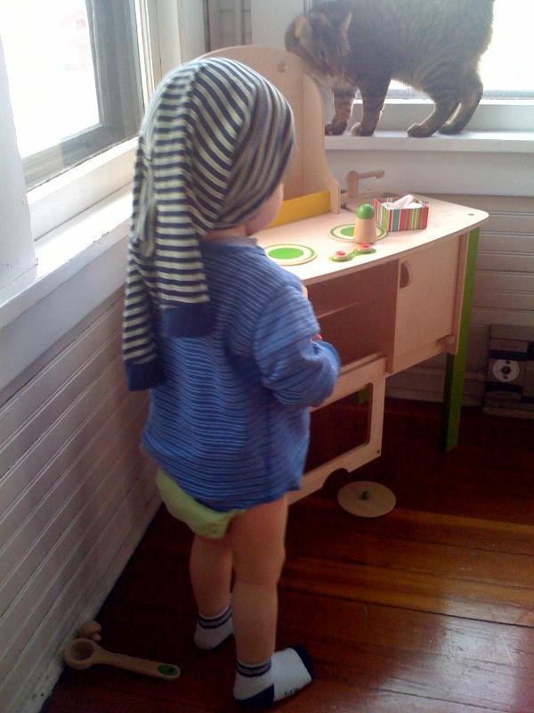 In other news, Nico almost used the potty today! I could tell he was about to do some business, so I asked him, "are you going potty?" And he nodded earnestly -- so I said, "Do you need to sit on the potty?" And he nodded urgently and ran over to his potty. Unfortunately, he had already gone by the time we got there, but he insisted on sitting on it anyway, which was cool. In any case, he totally recognizes when he has to go to the bathroom, and understands what the potty is for. One day soon, we're going to get there in time!