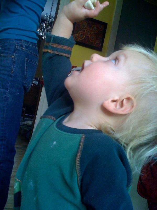 Nico had a pretty good day, but once again, he threw up this evening. Pretty much all of what he'd eaten this afternoon it appeared.