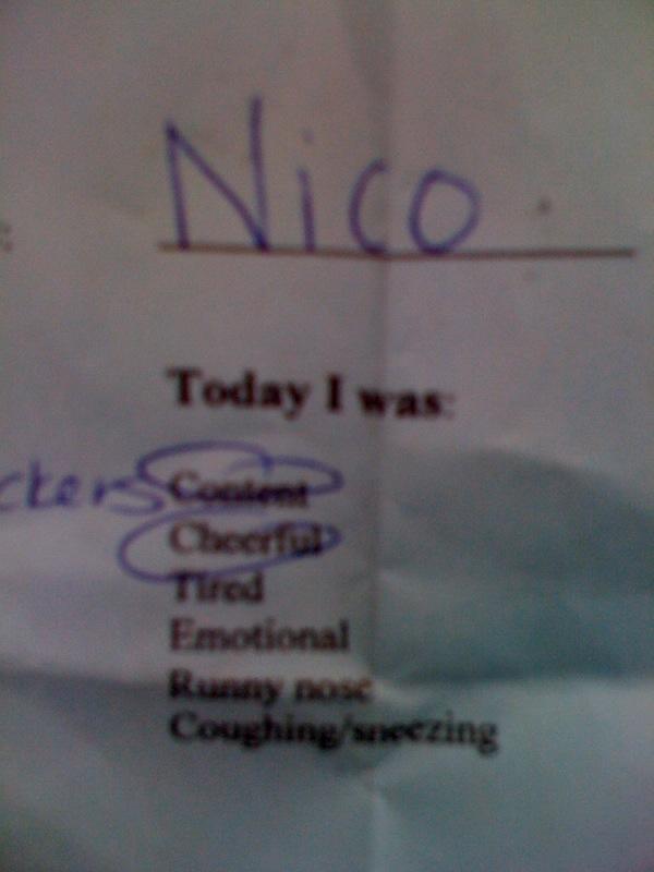 Nico's daycare report