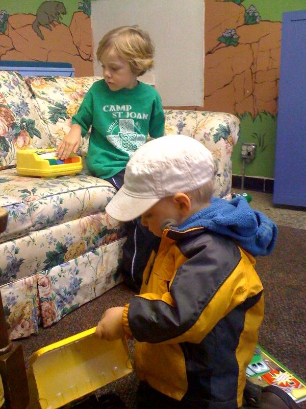 Playing at the bus stop