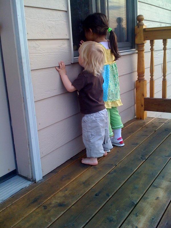 Looking into the house