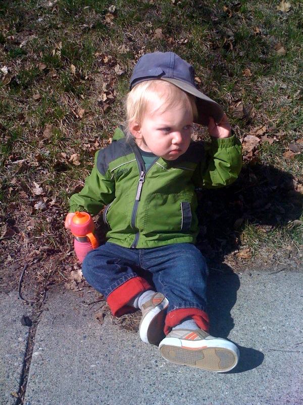 Out for a walk and Nico decides no more walking, no stroller sitting and Daddy can't hold Nico either. Sitting on the sidewalk for 10 minutes....