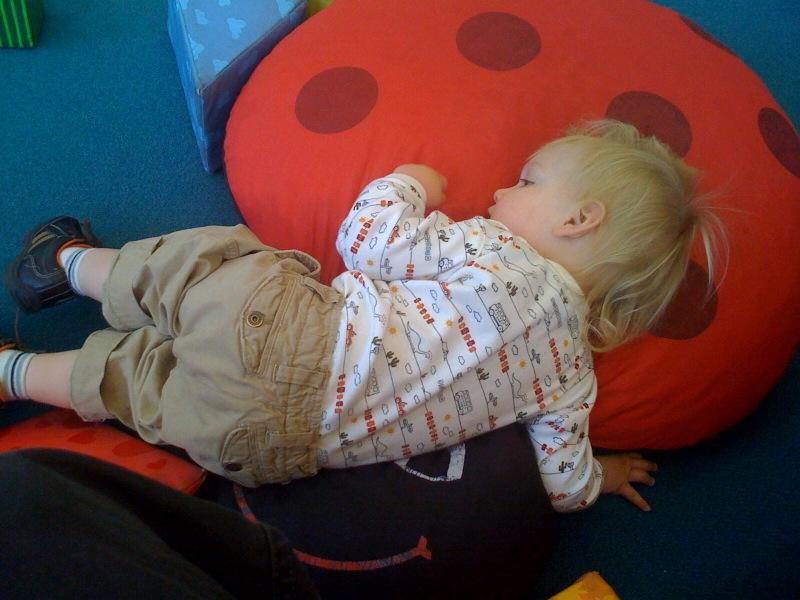 Laying on a giant ladybug