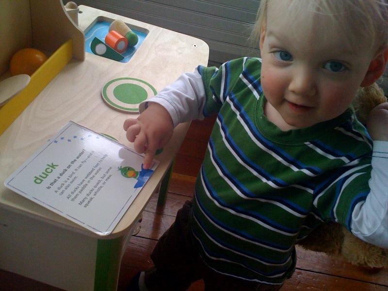 two days he's been pointing to this cartoon duck and saying "Anders".