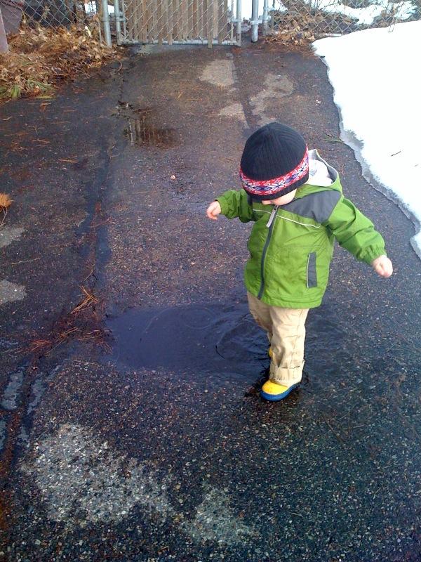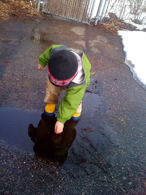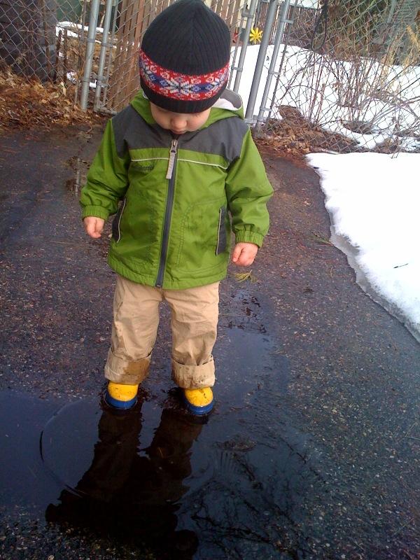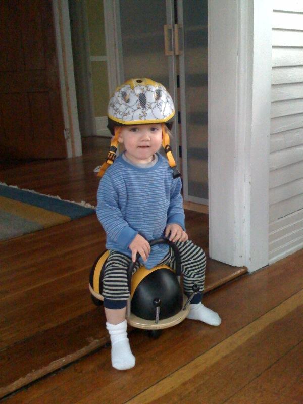 We've kept the bicycling helmet around this winter in an attempt to get Nico used to it - seems to be working, he grabs it on his own frequently.