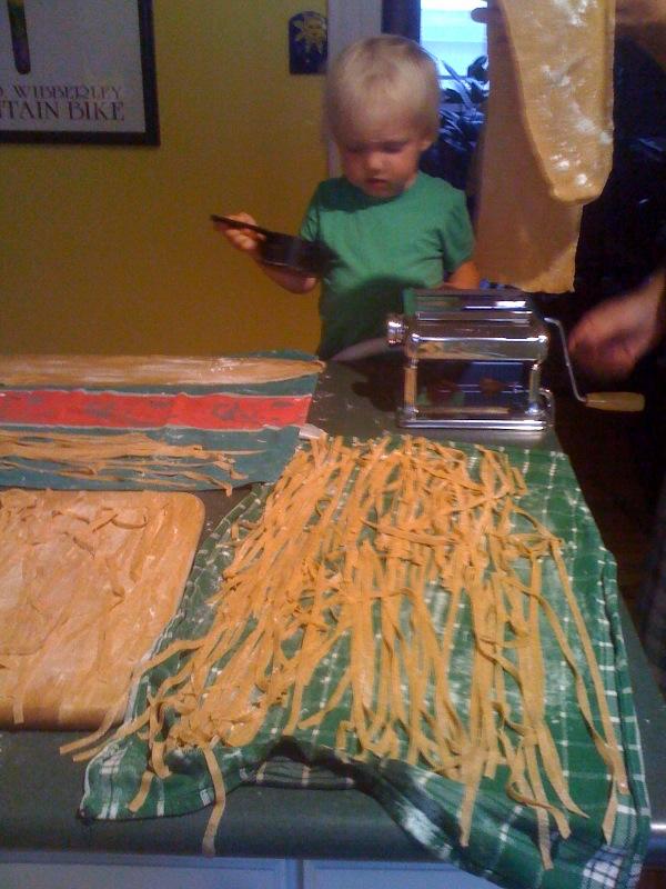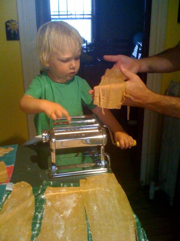 Nico helps make pasta