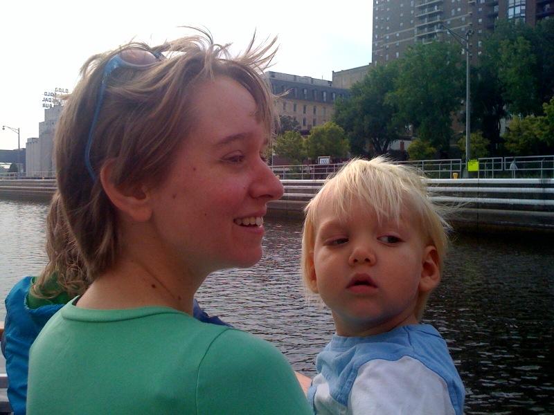 Zoe and Barb Friberg decending in a lock on the Mississippi