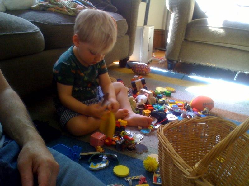 Nico plays with ALL the basket toys