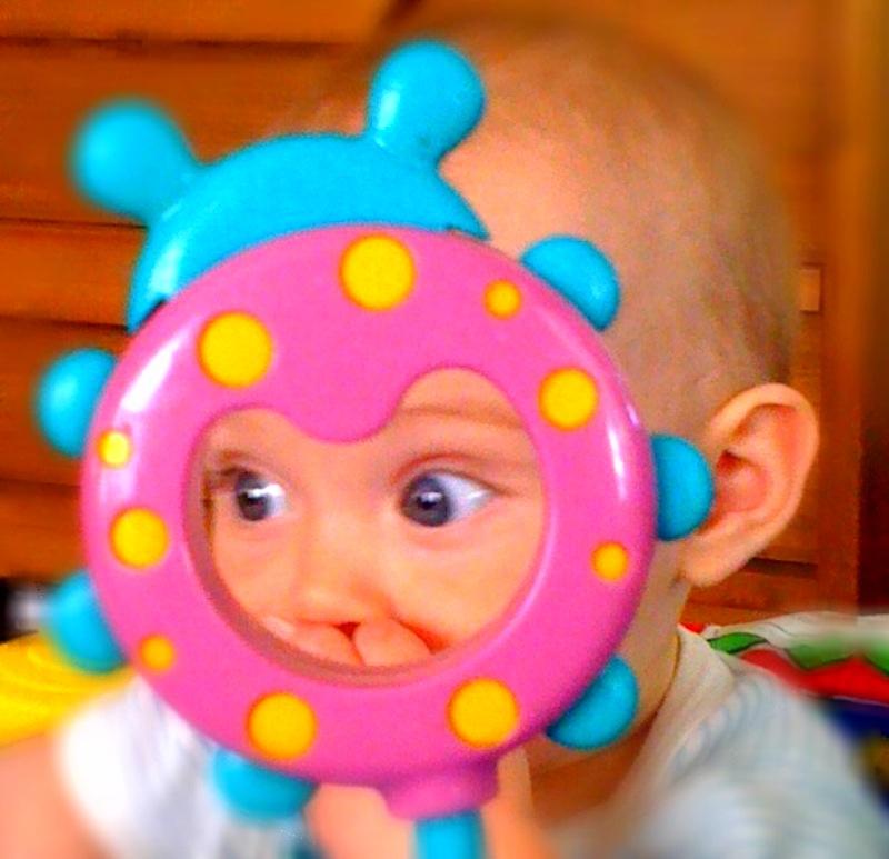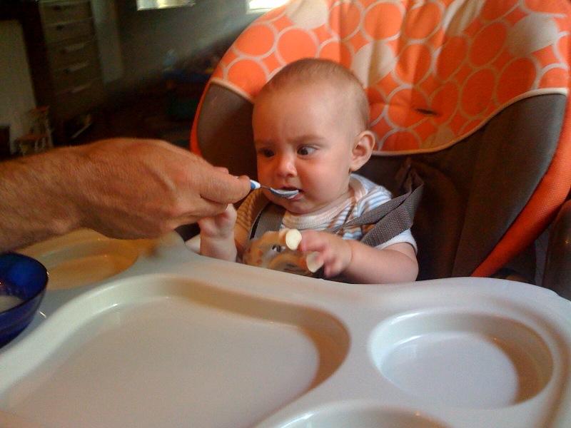 Maya eats rice cereal for the first time