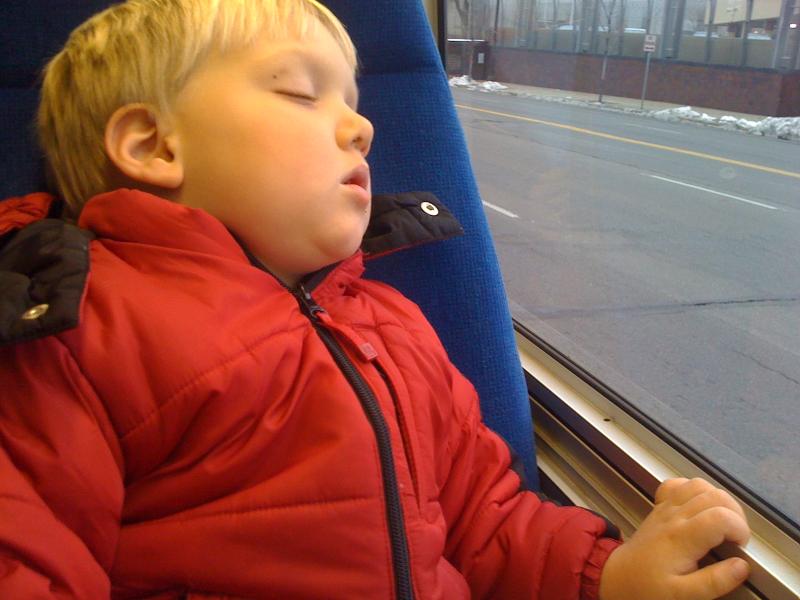 Northstar adventure in doubt, the plush bus seats and time of day have knocked Nico out. Only 4 trains today so we can't just keep on riding ...
