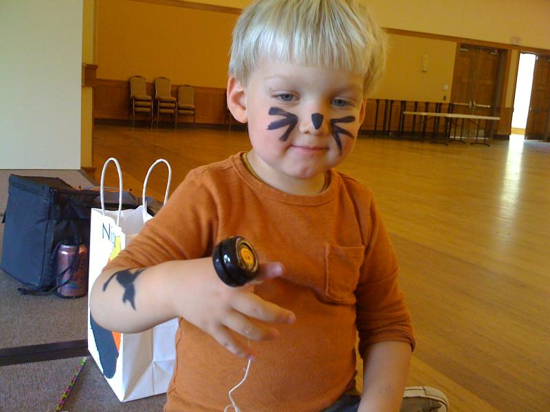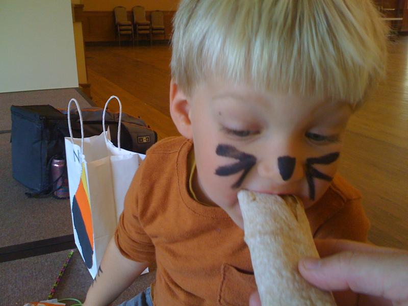 Halloween kitty has a nutritious lunch in the gym