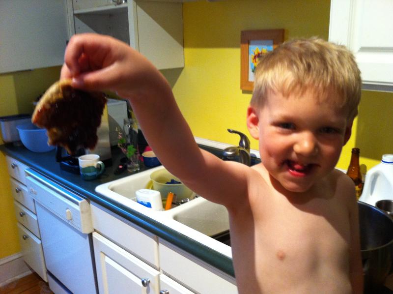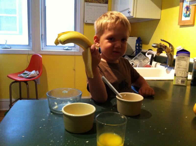 Skippyjon Jones has moz, bread crumbs, pickles & a banana for breakfast