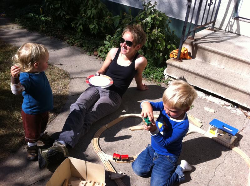 Mama having fun with the kids