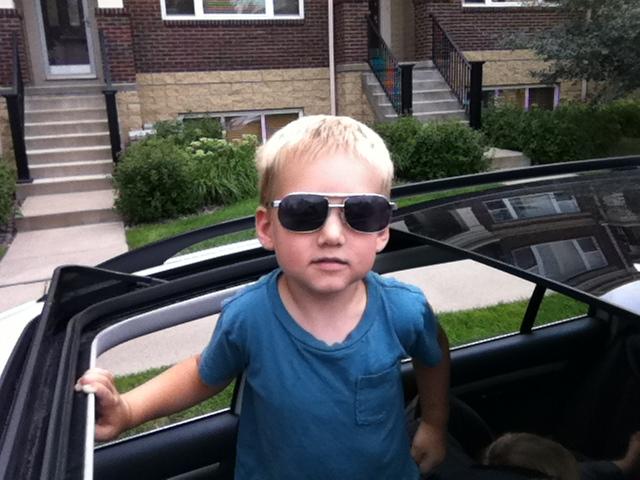 Sunglasses looking out the sunroof