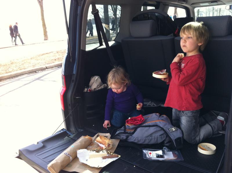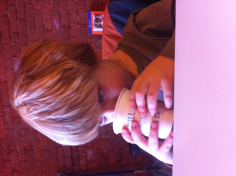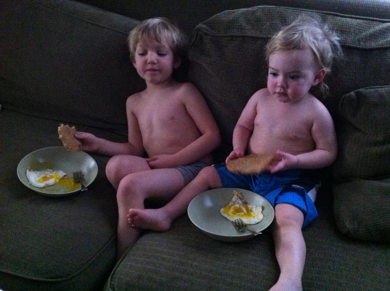 Sibs eating "Eggs in bacon juice" and watching vintage Superman