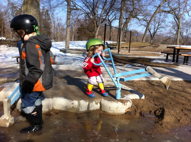 Helmet heads at Lake Harriet