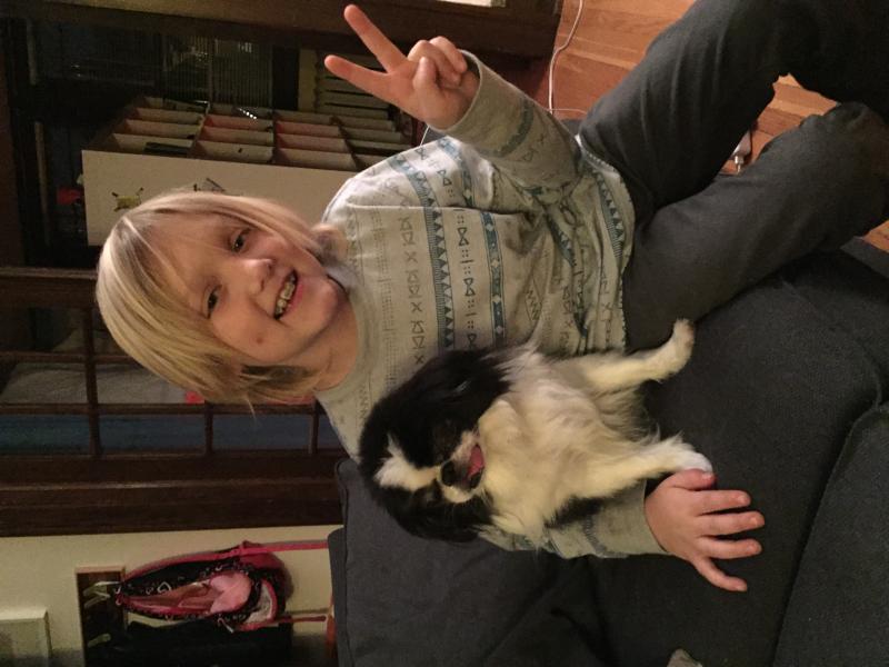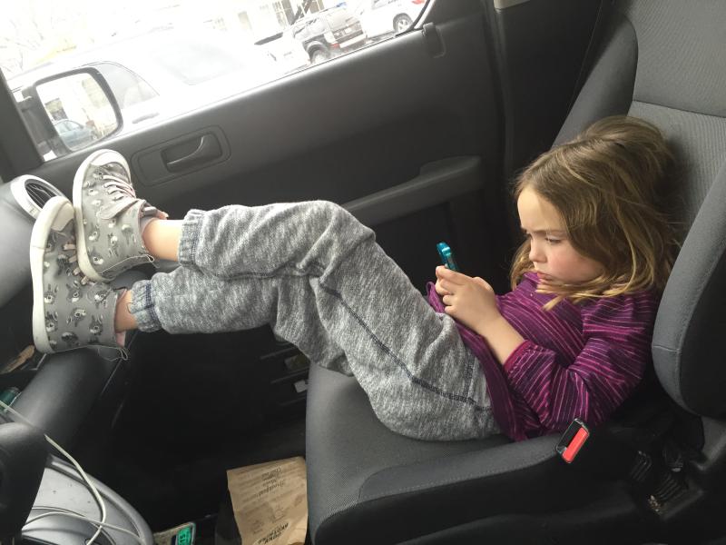 Maya lounging in the car while we wait for Nico